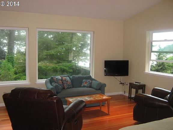 Million dollar views from unique 1/2 acre ocean front hideaway.Five mins. on rugged trail to beach.Separate spacious studio offers large bathroom & garage access.Lovely boardwalk to main w/covered deck & open concept living.Gorgeous Douglas fir hardwoods, 2 bedrooms & updated bath w/beautiful tile. Separate back stairs also lead to studio. Fully handicap accessible. Centrally located yet private.Ocean views abound.Lives large!Must see!