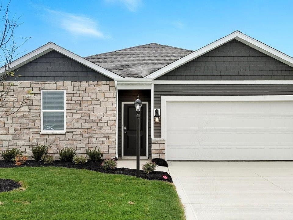 Check out 1280 Pleasant Hill in Southwest Fort Wayne, IN—a charming new home in the Estates at Signal Ridge community. This home features a private rear covered patio! Step inside this 1,825-square-foot home and find four spacious bedrooms and two full baths. At the front of the home, two secondary bedrooms share a hallway bath. A third bedroom is positioned near the laundry area and garage entry. The open living area connects the great room, dining nook, and kitchen for effortless flow and flexibility. In the kitchen, you’ll find everything you need and more—grey cabinets, lyra quartz countertops, and a generous island with a built-in sink and dishwasher. The layout is perfect for prepping meals or catching up with loved ones while cooking. A walk-in pantry gives you the space to stay stocked and organized. Your owner’s suite is tucked in the rear of the home, creating a private getaway. The bath includes a double-sink vanity, ceramic tile walk-in shower, and a huge walk-in closet with plenty of room for storage and comfort. Come see why Estates at Signal Ridge is one of Fort Wayne’s favorite neighborhoods! Photos representative of plan only and may vary as built.