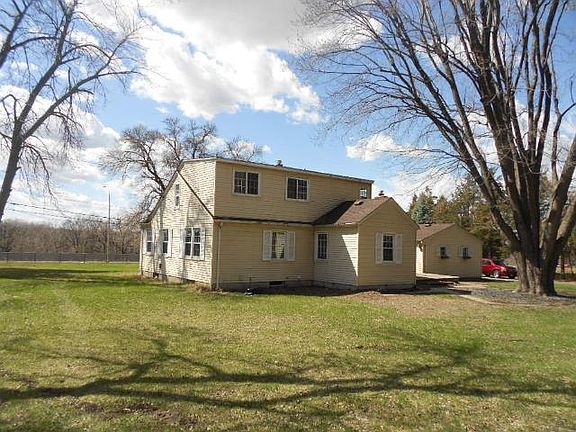 Amazing potential on private two acre lot with mature trees & views of Pigs Eye Lake. Home is a four bedroom & two bath story 1/2 home. Spacious main level with 2 beds, living room, dining room with fireplace, full bath & kitchen. Endless possibilities!