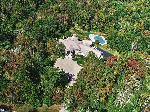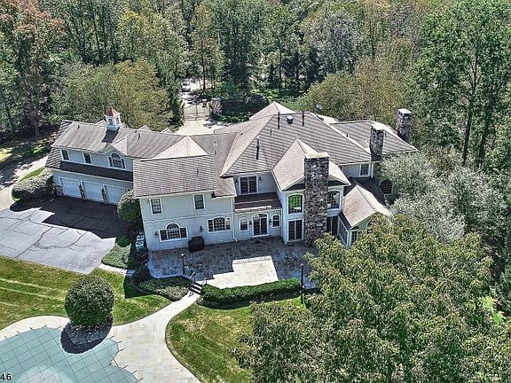 Tucked away on a private lane, Waterford is an elegant center hall Colonial custom-built in 1999. Nestled into its tranquil 5+ acre setting, this creatively-designed home features stately and exquisite custom detailing throughout, with captivating views of landscaped gardens and magnificent shade trees from every room. The open floor plan features sophisticated sun-filled formal rooms containing high ceilings, walls of windows, five marble and stone fireplaces, and French doors that connect the interior spaces and open onto a spacious bluestone terrace. The home consists of thirteen rooms, an attached four-car garage, plus a finished lower level. Entered by a marble-floored foyer with a dramatic winding staircase, the formal living room and dining room, bright solarium, and paneled library adjacent to a sunroom, all offer spaces suitable for large gatherings. The expansive gourmet kitchen is equipped with high-end appliances including a Viking range and food warmer, Miele dishwasher, and Subzero refrigerator. Designer wood cabinets with granite countertops, a cozy dining area, breakfast bar, walk-in pantry, and large butler's pantry are additional features. Also on this level are a powder room, laundry room, and bedroom with full bathroom, which is presently used as an office. Highlighting the second level is an impressive master suite adjoining a luxurious master bath and a sitting room featuring a wet bar and fireplace. The suite opens to a balcony overlooking the gorgeous grounds. There are three additional bedrooms on this level, all en-suite, plus a bonus room connected to the master bath. The lower level is an amazing part of the home designed for entertaining. Its focal point is a large commercial-size mahogany bar with a stone fireplace nearby. Other finished spaces include a theater room, gym, bathroom with sauna, and wine cellar. Superbly constructed, the entire home reflects timeless elegance and style. A bluestone terrace and bluestone walkways, kidney-shaped pool/spa, five-hole putting green and extensive gardens enhance the property's park-like setting. This Bedminster treasure is located in an area dotted with equestrian farms, rivers running through and rustic country roads. Its rural character is predominant yet it is just minutes from interstate highways and train stations for commuters headed to Manhattan. It is convenient to shopping, restaurants, and fine golf clubs, including Hamilton Farm and Trump National, which is just down the road.
