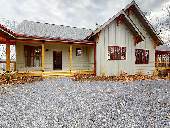 This beautifully designed mountain home is at the highest point of The Summit at Lost River, located 2 miles south of the Baker interchange (onto Corridor H/-48) which leads west to skiing and east to Northern Virginia. Cathedral beamed ceilings, stone surround fireplace with raised hearth, screened eat-in porch/living area off of the Great Room, wood floors and a beautifully designed kitchen with large island breakfast bar. Gas cooktop, wine captain, French door refrigerator, pantry, and Miele dishwasher. Entry level has hardwood flooring throughout. There are three Pella sliders that open to the front deck providing an expansive view of the Lost River Valley and river below. The front deck has stainless steel cabling in lieu of wooden pickets, thus providing better unobstructed views. Lighting and propane outlet for a grill is provided. The primary bedroom is just off the entry and has and exit to the front deck overlooking the LRV. The bath has a double sink (floating vanity), Toto toilets (Washlet ready) and tiled shower enclosure with rain shower head. All three tiled bathrooms have heated tile floors & glass sliders for the showers. There is a wooden open staircase designed and built by local craftsmen that leads to the lower level. These same craftsmen built and installed the kitchen cabinetry. All doors are solid wood, and all hinges are brushed nickel to complement the brushed nickel door handles. All lighting is LED. The Lower level has the 2 additional en-suites. These 2 guest suites are separated by the media room. Both bathrooms have floating vanities, tile surround showers. The two bedrooms are carpeted. The hall and Media room are tiled. The Mechanic's Room was fully equipped, and water tested & equipment designed and installed by Water Works. The water is treated and passes through a UV light system. The Highly Efficient electric furnace is controlled by phone App or manual house thermostat. The exterior of the house is a Smart Board. Three coats of exterior paint. Gutters are covered with a leaf guard exiting in underground conduit down the hill from the house. There is a Disconnect Box on the exterior side of the house to accommodate a Hot Tub. The Contractor designed the Septic System to the side of the house so that a pool could be built at later date in front of the house or to the South side. The finished 2-car garage has been prewired for EV hookup. There is a separate door to the garage that leads via a covered passageway to the front door. This is a 9+ acre lot with almost three football fields of frontage on the ROW/Driveway at the top side of the property. This ROW/Driveway from the Cul-de-sac at the end of Rocky Branch Road services only this property and the one further South down the lane. There is a one-year Builder Warranty.