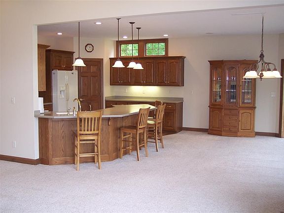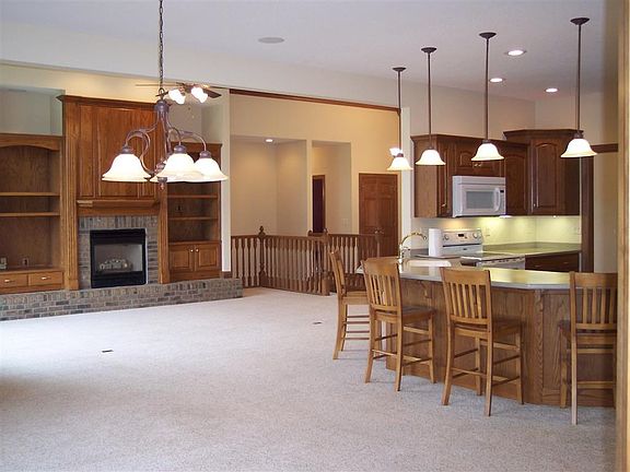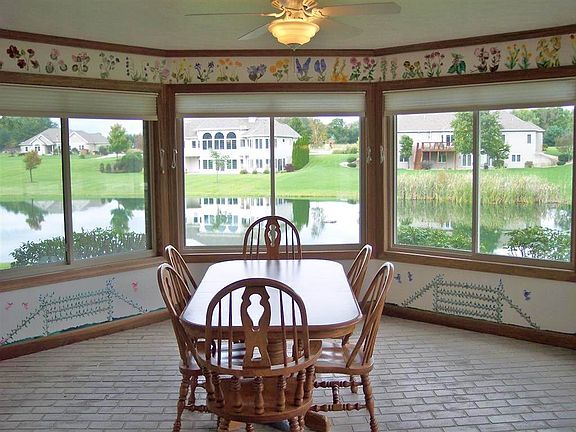 Beautiful villa on Heritage Lake with panoramic views from large four seasons sunroom. Spacious open concept with 3 bedrooms, 3.5 baths. 1,999 square feet on ground level and 1,355 square feet in lower level, totaling 3,354 finished square feet. Always have yard work and snow removal done for you! Small shop in the lower level and garage to tinker. Wonderful sauna for those relaxing cold nights. Featuring 2 gas log fireplaces - one in great room and one in lower level family room. Ready to move into with immediate occupancy before the holidays!!! This wonderful layout is a "must see" to appreciate fully!! Stocked fish in the lake for great fishing anytime! All appliances and Geothermal HVAC included.