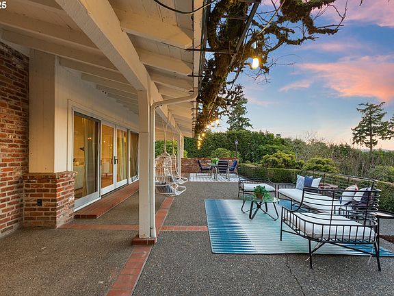 This exceptional and recently updated Roscoe Hemenway-designed home is a rare gem, offering stunning territorial and sunset views. Located on one of the best streets in Dunthorpe—Military RD, the home provides complete privacy on beautifully manicured grounds. Enjoy outdoor living with a sport court, firepit, hot tub, and an oversized patio perfect for entertaining! The home is light-filled and offers breathtaking views of the Southwest Hills. Enjoy this floor plan that features, predominantly, one-level living, with three main-level spacious bedrooms, each ensuite. The sun-drenched gourmet kitchen flows into a cozy dining room with a fireplace. Enjoy the views from the spacious, vaulted living room, whether you're watching TV or cozying up by the fire. A wall of windows lets you take in the view year-round, complemented by built-in bookshelves and ample storage space for all your essentials. The primary suite is a true retreat you won’t want to leave, while the other sunny, bright bedrooms offer plenty of room to unwind. The home also includes a basement with additional storage, a bonus room, a full bathroom, and more! It is worth noting that this home has exceptional storage throughout, including an oversized laundry room with stunning views. This perfect retreat is just minutes from Riverdale Grade School, Lewis & Clark College, and more. The location offers close proximity to Lake Oswego, shopping, dining, and a quick commute to downtown Portland. For a full list of updates, please inquire. This sale includes two tax lots.