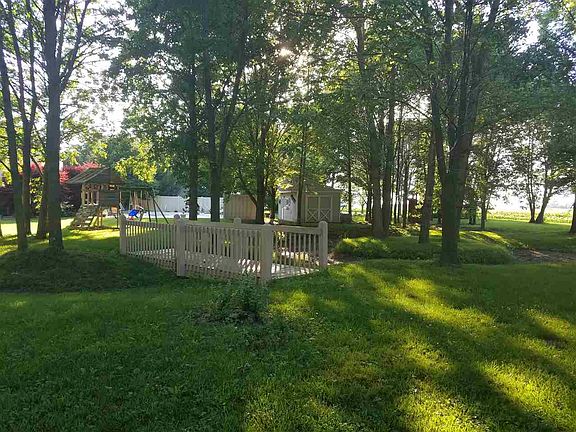 This type of property does not come available often this property is very heavily wooded sits on 2.60 acres. pole barn , in ground pool, pool house, storage shed vinyl fencing, bridge island with pond. inside has all new master bath ceramic tile shower with two heads NICE!!! new kitchen with custom cabinets and quarts counter top living room has cathedral ceilings master suite is on the 1st floor with 3 extra bedrooms up on the 2nd floor. lots of closet space all new lightning in the last 3 yrs this property has been update to the most modern thing available This is an unbelievable setting its a must see all appliances will remain. 4 bedrooms 2,5 baths new carpet in January in living room and in master bedroom almost all pool parts have been replaced except for the heater yes it has a heated pool with electric cover diving board basketball goal and slide grand landscaping this property does have natural gas not a lot of property's in the county have this so that's a plus ( fat heads on walls do not stay )