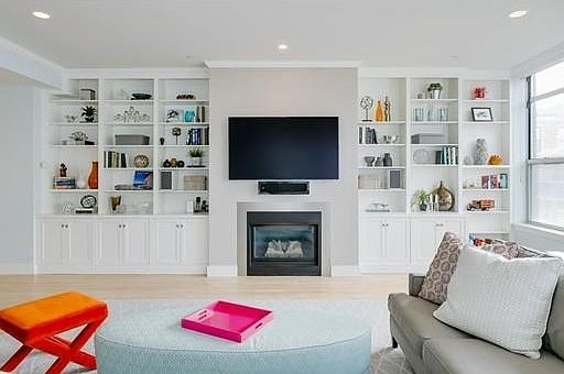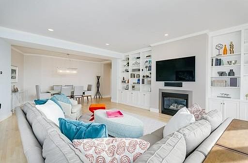 Stunning 4 bedroom/2 bath at The Savoy, a luxury, boutique elevator building across from Peters Park. Enter to gracious foyer leading to wide open living/dining room filled with light. Enjoy maple floors, custom built-ins and relaxing in front of the gas fireplace. Newly renovated and expanded kitchen features polished Ceasarstone counters, extra large walnut cabinets with glass panels, glass mosaic back splash and top-of-the-line stainless steel appliances. Separate architect-designed breakfast nook with hidden storage and banquette seating. Four ample bedrooms and two newly renovated baths featuring Kallista and Toto high-end plumbing fixtures. Wonderful master features en suite bath with separate rainwater shower and generous closet space. Step out to your private balcony. Includes garage parking in the building with extra storage and basement bicycle storage.