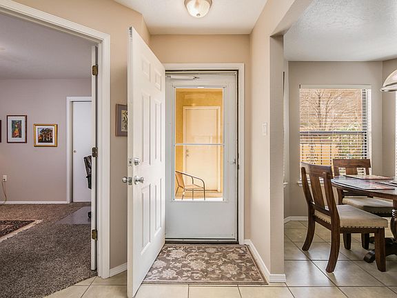 Light and bright end unit, one story condo with the feel of a patio home. High ceilings, split floorplan, lovely open and updated kitchen and bay window in the dining room make this wonderful place the perfect spot in the foothills. Just a block from lovely trails and a few more blocks to true wilderness. Incredibly well-cared for, this home boasts a cozy and private from courtyard plus a good-sized backyard with covered patio, views of the sunsets and plenty of room for your plantings, dog or backyard furniture.