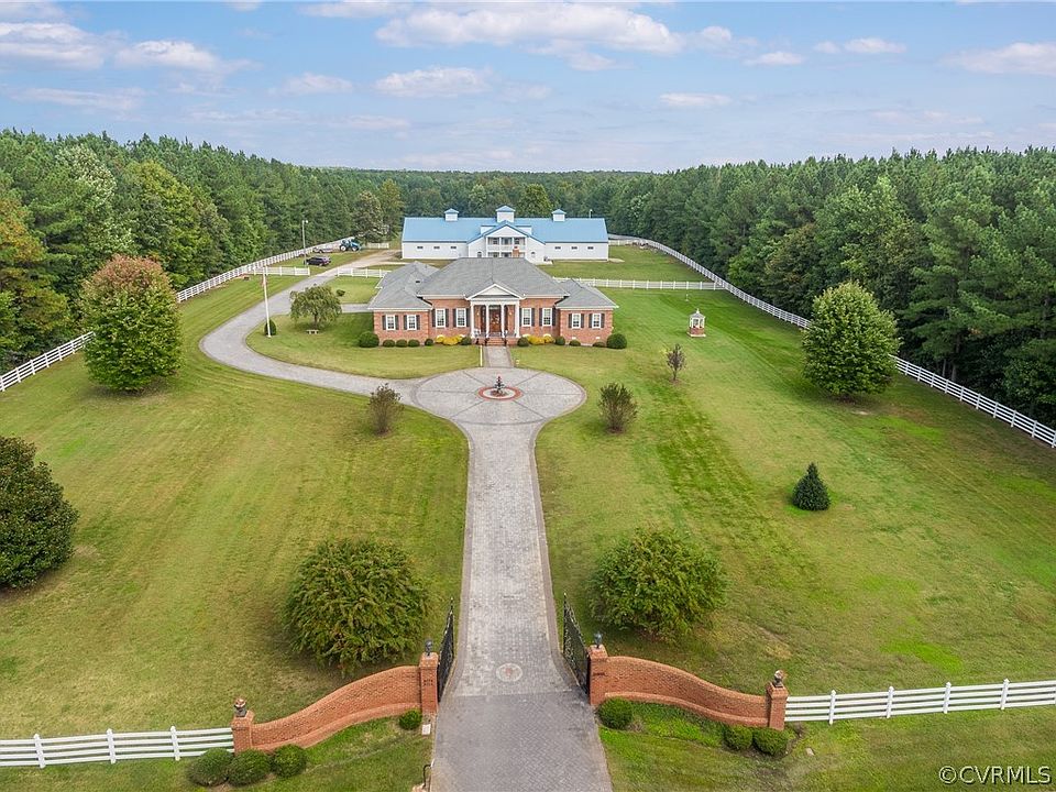 Impressive 27+ acre Equestrian Estate located in Chesterfield, VA. Priced well below the appraised value of $2M. Imagine entering thru your privacy gate, past the fountain and all brick main house, and circle around to your incredible barn that boasts ten 12x12 stalls with auto waterers and feeders, a spacious office, lots of storage, and an upstairs 2 bed/1 bath apartment. Your horses can roam among the 4 pastures, all with frost-free waterers and run-in sheds. After you enjoy a nice ride, wander back up to the house and sit and relax in the gazebo, fix a nice dinner in your patio brick BBQ grill and enjoy your picturesque scenery. In the main house enjoy one-story living and custom touches galore! Eucalyptus hardwood floors, custom cherry cabinets throughout, and a spacious chef's kitchen are just a few of the features of this all brick home. Controlled crawl, radon mitigation system, irrigation system, and whole house generator are just some of the "behind the scenes" perks that make this house strong and energy-efficient. Plus conveniently located near Chesdin Landing, shopping, restaurants and under 30 miles to Richmond International Airport.