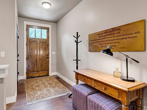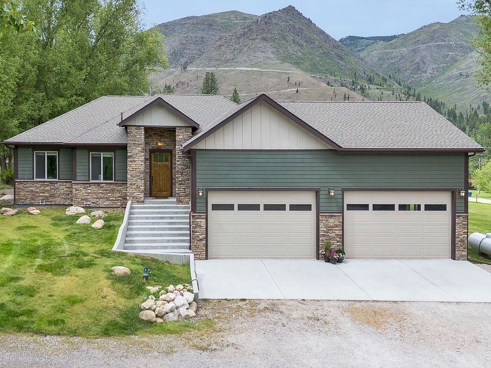Enjoy stunning Bitterroot Mountain views from this 3,360 sq ft home on 2.2 acres, just 1/4 mile from Forest Service access and near Lolo Creek—ideal for hiking, fishing, hunting, and so much more. The well-maintained interior features a gas fireplace, mountain views from the kitchen and living area, and a main-floor master suite with en suite bath and walk-in closet. A large unfinished basement offers endless potential. Exterior highlights include water rights with irrigation, a seasonal pond, fruit trees, a beautiful deck, and potential for garden space and animals. The property also includes a 4-car attached garage and a 20'x30' pole-frame building with power. Cement siding adds fire protection and durability. This rare property offers the perfect blend of privacy, recreation, and rural charm—all within reach of Montana’s outdoor beauty. It's more than a home- it's a lifestyle waiting for you!