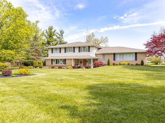 Extremely Well Maintained Tri-Level Home on almost 2 acres! This home boasts over 2800 finished square feet of living space with 4 bedrooms and 2 1/2 baths. Featuring a large flag stone entry, updated eat-in kitchen, formal dining room leading to the formal living area. The upper level has an extremely spacious owner's suite with updated bath and dressing area, and 3 additional bedrooms. The lower level has a nice family room with pellet stove and half bath. There is a 2 car attached garage with updated garage doors. You can enjoy country living from the tile rear patio or the front covered porch. The lawn and landscaping are meticulous. 3 Sheds will stay. Plenty of storage in the partial basement. See list of updates. Call today for a private tour of this wonderful home!