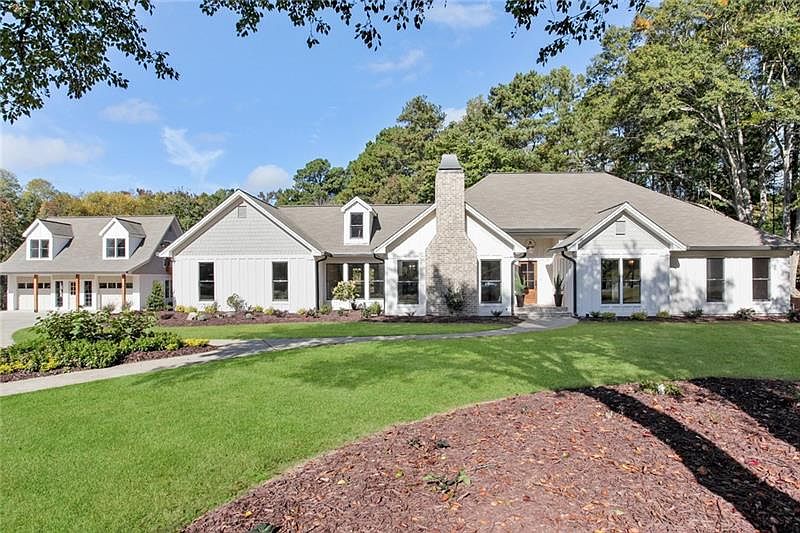 Exquisite, unparalleled renovation on 1.7 acres in the heart of Alpharetta. This ranch home features a new master suite on the main with vaulted ceilings and cedar beams with his & hers separate closets, elegant all marble master bath w/designer cabinets, shower and separate soaking tub. Additional in-law suite on main floor, large bath and private sitting deck. The new Chefâs Kitchen with Quartz counters, oversized island, all new cabinetry, new professional grade appliances, wine cooler, walk-in pantry, opens to views of the fireside 2-story great room. Large windows throughout bring in the welcoming sunlight of the day.Walk out onto the covered veranda and newly built deck and admire the tranquility of this property. So many detailed upgrades to this residence: every en-suite bedroom and bath has been renovated, new hardwood floors, freshly painted and all new light fixtures throughout. Home office, laundry room with stained barn doors on main level. Newly finished terrace level with recreation room, bedroom and custom designed full bath, partially finished room with garage door opens to the backyard perfect for either a workroom/art studio/exercise room or game & entertainment room. Entirely renovated apartment above the detached garage w/ private entrance, bedroom, walk in closet, full custom bath, kitchen and large sitting area. Pool-ready back yard is awaiting to be transformed into your own private retreat. Professional landscaping, irrigation system and outdoor lighting. Walking distance (with sidewalks!) to downtown Alpharetta with adorable restaurants, shopping and entertainment. Award winning schools.