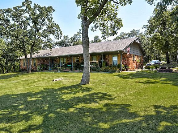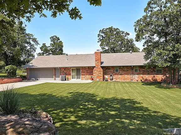 Charming North Edmond 3 bed, 2 bath home situated on a wooded and manicured 1.03 acre lot. This home has been completely updated with new wood look ceramic tile and laminate flooring throughout. Kitchen renovation with open layout, new stainless steel appliances, undermount farm sink, and granite countertops with bar seating. Soft close draws. Open living with wood burning fireplace, light wood accents giving a light and bright feel throughout. Great outdoor space, with welcoming front porch and wrap around side walk. Manicured yard and flowerbeds with blackjacks scattered throughout the property. Storm shelter in backyard. Located outside of the busy city but convenient to highways, schools, and shopping. The custom touches throughout the home truly make it one of a kind!