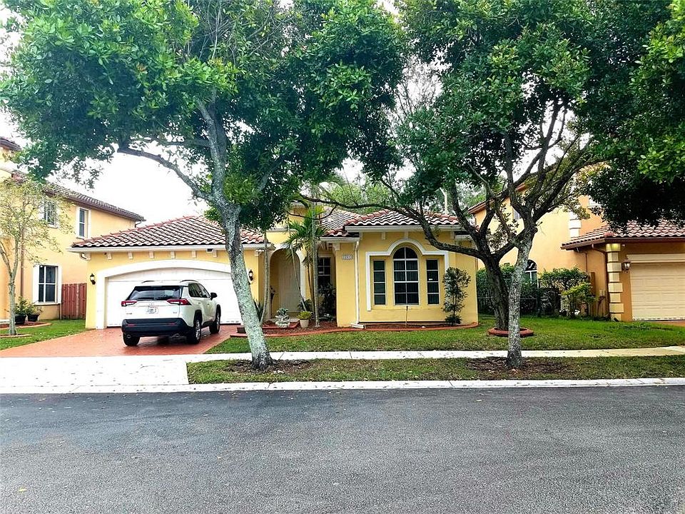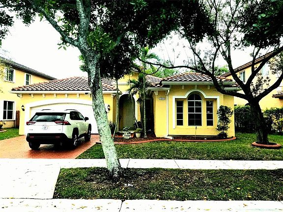 Beautiful home in gated and impressively landscaped community. 3/2, 2 cg with formal dining room, living room, family room off kitchen area. Community has pool, clubhouse and kids play area and security. All appliances stay. Tile flooring, Tile roof. Master bedroom with large walk in closet, bath has separate tub/shower. Great size kitchen open to family room. Great layout with 2 bedrooms split from master suite. Private backyard with covered patio, hurricane shutters.(Temporary bed/dresser in dining room)This home is a pleasure and looking for a new owner to enjoy.