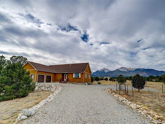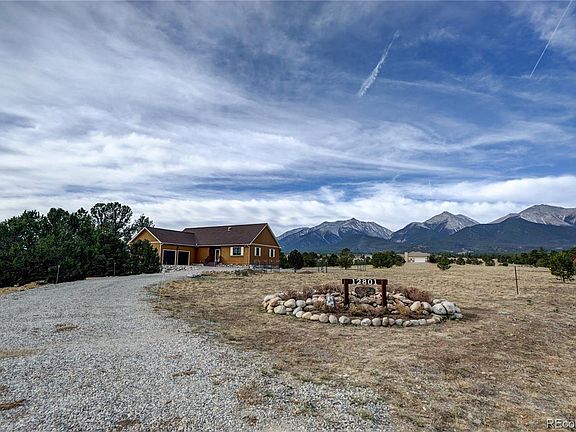 This one of a kind property on 8.3 acres is located in one of Chaffee Counties premier neighborhoods, Mesa Antero. Walking in the front door will take your breath away as you look out the windows of the Sun Room framing Mount Antero and Mount Princeton. The sun room includes a beautiful built-in bookcase with log accents and window seats. The Great Room is in front of you with a cozy fireplace with a pellet stove insert and a lighted custom log bar with a wine cooler and built in cabinets. The kitchen includes all appliances and has a panoramic view of the mountains out the bay windows in the dining area. There is a laundry closet and pantry next to it. Across the room is the master bedroom suite with two walk-in closets, a 3/4 bath with glass block accents and a door to directly access the deck and backyard, The slider in the Great Room invites you out to a large composite deck which wraps around to the south side of the property with the ditch running through the large Ponderosas and river birch. There is a lovely garden on the east side already to go with a fence. The property goes all the way to the next road south. This property is in filing 5 and allows outside watering and up to 2 horses. A two car garage is attached. The finished basement includes a bedroom, bonus room with barn doors and a 3/4 bath with tile accents. A large open area is perfect for exercise, Tv Room or a sewing room or all three. There is an outside door access to back yard adjoining the storage/workshop area.