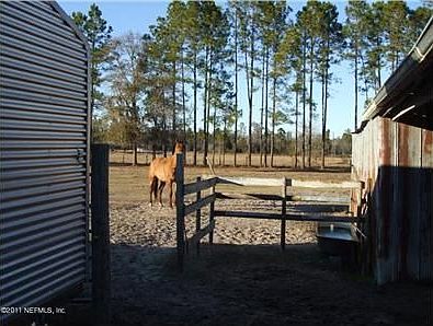 Horse Ready!!!Come to the country to live in peace and quiet, yet a bedroom community to either Gainesville or Jacksonville. Great Lake Butler schools! This 4/2 brick home on 5 acres has oversize living room (17x23) with vaulted ceiling. Master bedroom is split from other 3 bedrooms. Barn has 5 stalls, feed room, storeroom and breezeway. Cross fenced with good pasture. Also 4 acres may be available beside. On paved road in nice rural community (Dukes) between Lake Butler and Worthington Springs. .