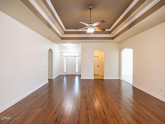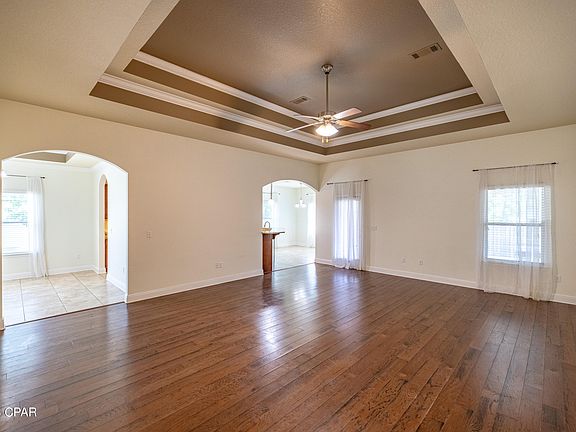 Immaculate Lake Merial home with a 3 car garage! This 4BR/3BA home has an all-brick exterior, real hardwood floors throughout the main living areas, double tray ceilings in the living room, a formal dining room and a large back patio with TV hookups for entertaining family and friends! Lake Merial is a 300 acre gated lakefront community with private owner access to the lake for swimming, kayaking, & fishing! The Community has 2 natural spring fed lakes, white sandy beaches, park areas for playing, picnicking, or relaxing. The location is convenient to schools, a short drive to beaches and your day to day activities. You'll love the high ceilings throughout the home and the spacious kitchen with granite countertops, a tiled back splash, walk in panty, stainless steel appliances and a breakfast bar. The master bedroom has tray ceilings and a private master bathroom with a double vanity, large soaking tub, walk in shower and a walk in shower. The other two rooms provide plenty of space for sleep, study or guests.