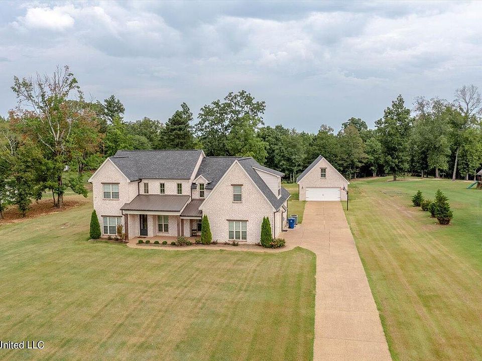 Nestled on a spacious 2.51-acre lot in Byhalia, MS, and within the highly sought-after Lewisburg School District, this stunning 5-bedroom, 3.5-bathroom home combines modern comfort with elegant design. The open floor plan features custom cabinets and built-in features throughout, offering both style and functionality. Enjoy outdoor living with a cozy fireplace on the back porch, perfect for year-round gatherings. The detached 2-car garage includes an upstairs storage area for added convenience. Thoughtfully designed, the master closet connects to the laundry room with an adjoining door, adding a practical touch to everyday living. Just minutes from I-269, this home provides both tranquility and easy access to nearby amenities.