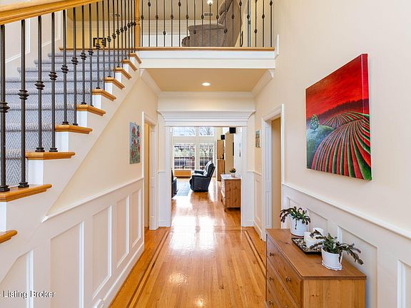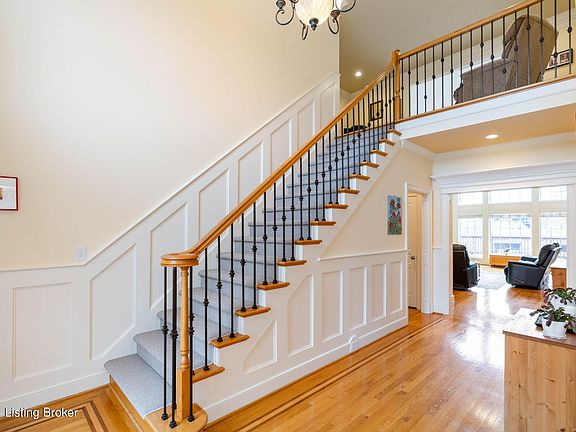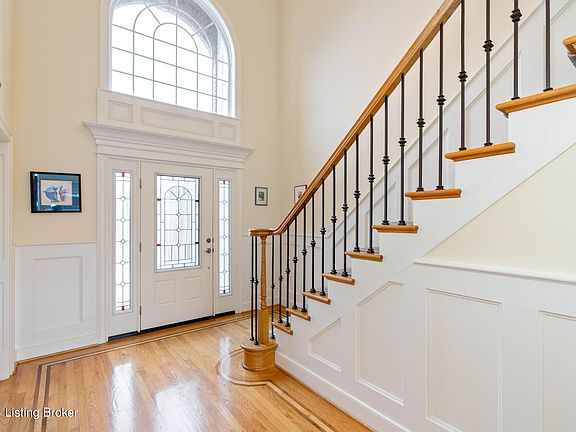 Welcome to Hillcrest living at its finest! This stunning home combines charm and elegance. Upon entering, you are greeted by a warm and inviting two-story foyer that seamlessly connects to the formal dining room and great room. The dining room features a vaulted ceiling, beautiful arched window, and wainscoting, while the two-story great room, open to the eat-in kitchen, presents custom built-ins flanking the fireplace and a wall of windows offering breathtaking views. The well-laid-out kitchen is a chef's dream, boasting warm wood cabinetry, granite countertops, walk-in pantry, and stainless-steel appliances, including a gas cooktop, double wall oven, dishwasher, and refrigerator. Enjoy casual dining in the cozy eating area, accentuated by built-in cabinetry, with convenient access to the covered deck. Tucked away in a serene corner is the owner's suite, offering expansive views through bay windows, an attached bath with separate dual vanities, and a walk-in closet. Upstairs, a spacious loft area overlooks the great room, accompanied by three generous bedrooms and two full baths. The finished walkout lower level expands your living space with a second family room, recreation/exercise area, fourth full bath, fifth bedroom, and ample storage, including a fantastic utility garage or workshop ideal for the safekeeping of all your outdoor equipment. Step outside to the patio and large backyard, perfect for outdoor entertaining. This home features an open, bright, airy, and spacious floor plan, with southern exposure flooding the interior with natural light. The large backyard boasts green surroundings and mature trees, complemented by a large deck with a covered seating area. A circular driveway, irrigation system, and concrete borders around flowerbeds add to its curb appeal. Other highlights include hardwood flooring with beautiful inlay work, crown molding, paneling in the dining room and staircase, separate entry to the basement from the garage, new roof, alarm system, high-efficiency heat pumps and furnaces, HEPA air cleaner system, whole house humidifier, and added insulation. The Hillcrest community offers a neighborhood clubhouse, swimming pool, playground, and tennis courts and is located just minutes away from award-winning Oldham County schools, restaurants, shopping, entertainment, parks, interstates, and state-of-the-art medical facilities. Don't miss the opportunity to make this exquisite home yours and experience exceptional living in Hillcrest. Schedule a showing today and embrace the timeless elegance that awaits.