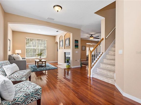 Reduced! Most sq footage & best price per sq' for Single Family Homes in Summerfield @ $151! Check out the 3-D Virtual Tour! Traditional 4 bedroom, 3.5 bath treasure takes center stage in Summerfield Village. An earthy palette of colors and finishes welcomes you into this spacious 2616 sqft. home that showcases gorgeous cherry flooring, two-sided gas fireplace and built-in for TV/sound system. Efficiently designed kitchen, up market granite, tumbled subway tile & cherry cabinetry strikes just the right balance for meal preparation & entertaining. It coordinates perfectly with the sunny breakfast nook, family room & nearby screened patio. Main level ensuite is perfect for Home Office, overnight guests or generational family. Master suite on 2nd floor offers a multi-faceted layout with interesting prospects for usage. Bedroom is 17'x14' with an adjoining flex room. Create a man-cave, nursery or craft room; the possibilities are endless. Master bath with bi-level vanity accommodates twin vessel sinks, waterfall plumbing fixtures & a granite surround. Additionally 2 other bedrooms, full bath & loft/bonus room complete the upper-level floor plan. Plush carpeting & tray ceilings are complementing features to enjoy. Spend a delightful afternoon with family/friends on the covered patio. Brick pavers hosts a beautiful heated pool and spa. Yours will be the "go-to house" for parties, BBQs and good times. Summerfield Park is an epi-center of vigorous activity. Enjoy tennis, soccer fields, nature walks, playgrounds & picnic areas. Heron's Nest Nature Park, Lakewood town center, Main St shopping& LWR Country Club are just a short distance away.