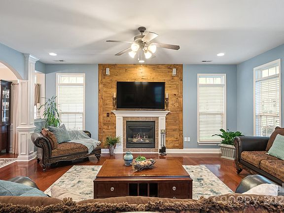Wood accents adorn this home in a convenient Huntersville location. A covered front porch takes you into a large living area, & a gas fireplace open to dining room, all with hardwood floors. Kitchen has breakfast bar, & dining area, SS app., granite countertops, & looks over backyard. From the kitchen open the door to your enclosed sunroom that seller has finished into a beautiful bar room. Out the door of the sunroom is your backyard patio with a vinyl privacy fence, & adorable shed for storage/flower potting. Upstairs is a loft area/office, large bonus room/4th bedroom, & 2 additional bedrooms all with wood accent walls & a full hall bath. The primary bathroom has a soaking tub and has been updated with a huge tile to ceiling shower, & double vanity. The primary bedroom has lighted trey ceiling, 2 closets (his/hers), and a covered balcony to sit outside and enjoy the beginning and end of your day. Great location, close to restaurants, shopping, hospital, and interstates.
