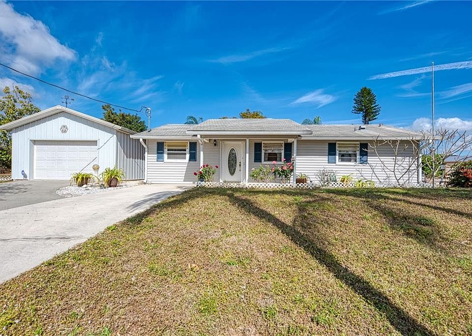 This charming home is located in the desirable Gulf Cove section of West Charlotte County. Here is a quiet neighborhood that gives you plenty of room to go for long walks or bike rides. The property has two-bedrooms one bathroom, a large lanai surrounded by a vinyl fence for your privacy, a detached garage, and two storage sheds. Professional sports are within an hour and a half drive to Tampa, while spring training camps for professional baseball teams are within minutes. Close to schools, dining, shopping, county library, Tringali Center with a gym, tennis courts, playground, basketball courts, and hockey rink, yet perfectly tucked away from the hustle & bustle. Our Cape Haze Penisula communities boast over 200 holes of Golf within minutes from your front door, world-class fishing with 4 large public boat ramps, and a private ramp within this community. Call today to schedule your private showing before it's gone!