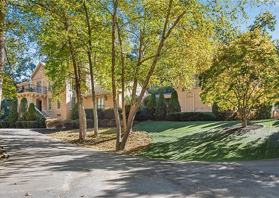 Situated on a deep lot, this french country estate on 2.50+- acres in the sought after neighborhood Litchfield Hundred in Roswell. Extremely private with a circular driveway and a second separate driveway to the 4 car garage with an additional 1200+- unfinished sq feet upstairs, perfect for an office or workshop. There is a walk in crawl space with garage door that could easily hold a golf cart and or motorcycles. Bring your boat and large vehicle as there is plenty of space for it. Lots of gathering areas to entertain, living room, two story great room, dining room, sitting room and a huge flex space that could be a library or game room. Beautiful Chef's kitchen with a center island, bar and butlers pantry is open to the great room. Shutters throughout. Primary bedroom with a sitting area has a large spa bath with seamless shower and massive closet, all secondary bedrooms are very large. One bedroom has a walk out balcony that easily holds a table and chairs and overlooks the property, this room was previously used as a second laundry room. Lots of closets and storage, hardwoods are throughout most of the home. The two sets of double french doors lead to an amazing park-like backyard. The garage is accessible from this area. Manicured trees, plants and flowers throughout, many seating areas, trellis, outside dining area, and a huge brick fire pit, fountain. A trail leads you around the property and to a separate building with electricity and a chicken coop! Extensive irrigation system that covers the area from the front to the back of the property with a hand held remote to operate from anywhere, also a drip hose to keep certain plants watered. The neighborhood has optional HOA, very close to Award Winning public and private schools, downtown Roswell highways and shopping.