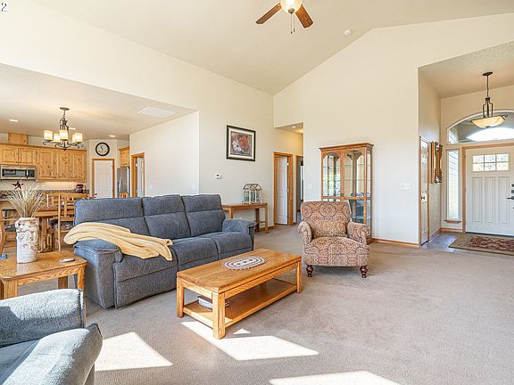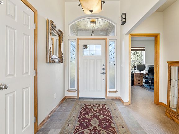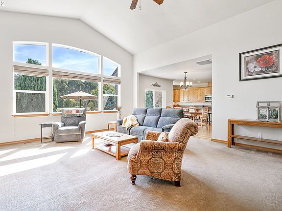Wake up to the most beautiful farmland and mountain views every day from this forever kind of property. Open vaulted living area boasting so much natural light with perfect landscape out of every window. Spacious kitchen with knotty alder cabinets, large quartz island and stainless steel appl. Incredible insulated 24 x 48 shop with 12' door amidst wonderful outdoor living space of an expansive patio, garden, fruit trees and pasture. Welcome to Newberg's most coveted neighborhood of Coyote Run.