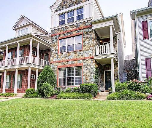 Carriage house style townhome in Clarksburg Town Center, over 3,000 square feet with 4 BR, 3.5 BA and upgrades throughout! Elegant stone front with Romeo and Juliet balcony overlooking Murphy~s Pond. Attached two car garage, 2 fireplaces and deck plus new roof, new heat pump and blower, new granite counters ~ and a credit for new appliances! *****Entry is on lower level with tiled entry foyer into a large family room with gas fireplace with mantel, legal bedroom and full bath. This level is also entrance from garage plus separate entrance with mud room and laundry area. *****Open floor plan with hardwood floors on the main level featuring a 3 sided fireplace between the living and dining rooms, columns and crown molding, access to the balcony for your morning coffee, kitchen open to the family room and breakfast nook plus French doors take you out onto the back deck. Kitchen features new granite counters and breakfast bar plus seller is offering a $3,500 credit for new appliances! A powder room completes this level. *****Upstairs the spacious owner suite includes a large sitting area, two large closets, luxury bath with double vanity and separate water closet. Two other bedrooms share the tiled hall bath. There are vaulted ceilings on the upper level. *****You are a short walk to multiple bus stops and two minutes to I-270. This home is also in walking distance of the pool and fitness facility; the elementary school; Murphy~s Pond; and just 3 blocks to the Greenway Trail. *****Clarksburg Town Center offers exceptional amenities: a Residents Club, a large conference room, community center, fitness room, swimming pool, six tot lots, pocket parks, Murphy~s Pond, an active social committee, swim team, beautiful common areas with water features and a mixed use retail center soon to be built. The HOA fee is $111 a month, also includes landscaping in front. *****Clarksburg is a master planned mixed use walkable community. The Village retail center is less than 5 minu