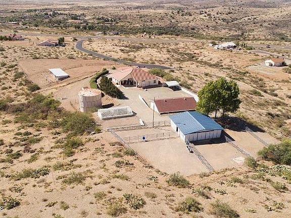 Incredible Views & A beautiful home! This 3 bed,2 bath w/ office is immaculate inside & well-manicured outside. Has infloor Heating & a floorplan that allows the outdoors in. Covered back patio off the kitchen/living area. Front patio has panoramic view of mountain ranges. Built-in shelves & desks throughout to give you an abundance of storage space. Kitchen opens up to living area for great entertaining space. A 3+ acre Horse Property w/ stables, barn, tack rm & storage that is ready for many horses, goats & others! A workshop that is a man's dream! Semi-living quarters on 1 end, loft w/upgraded lighting for round the clock daylight. This home has all the conveniences of city life but....Peace & Quiet w/amazing views. Get Away from the heat and come see this ''Showcase Home''.