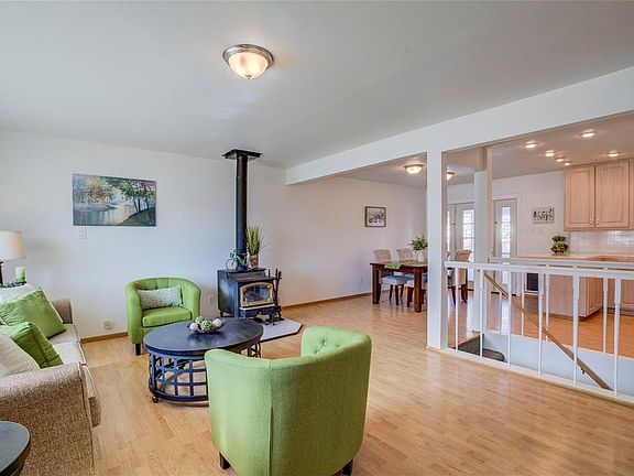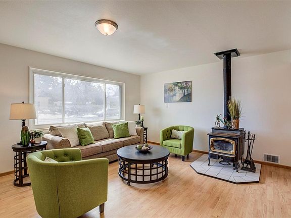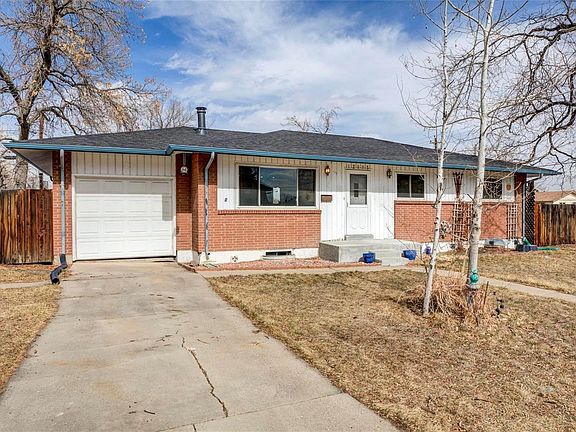 This classic brick Hutchinson ranch could be your next home! The main floor offers an open floor plan with a sunny living room with wood burning stove, eat-in kitchen, sun room, master bedroom with private bath, 2 additional bedrooms with hardwood floors, and a full bath. The basement has been finished to include a family room, 3 bedrooms, a full bath with double sinks, and the laundry/mechanical room. Fresh paint and new light fixtures on the main floor. Newer roof and garage door. 1 car attached garage. The fenced back yard has a dog run and plenty of space for fun including a volleyball court! Conveniently located to all that Applewood has to offer such as wonderful dining options within walking distance, Jeffco schools, shopping at Colorado Mills, recreational facilities, and highway access.