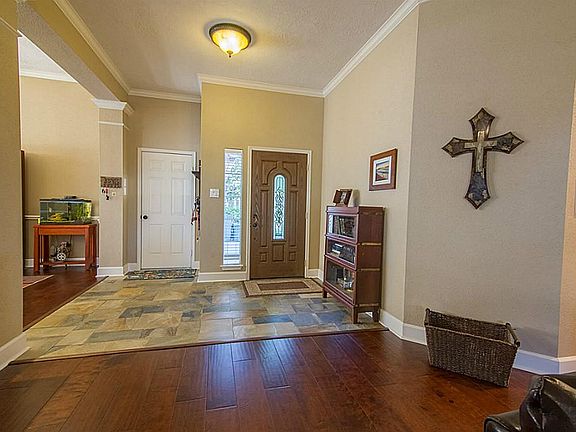 Immaculate David Weekley. New 7'' hand scraped wood floors, New AC/Heater 2015, 2'' blinds, high ceilings, sprinkler system, custom slate tile in entry & at double sided fireplace, upgraded lighting fixtures and door handles, newly refurbished/painted cabinets w/soft close hinges in kitchen, LED under counter lighting, New Bosche SS dishwasher, French doors open from master to backyard patio, adjustable closet system, 6 person hot tub solid wood pergola & deck. Call me today.