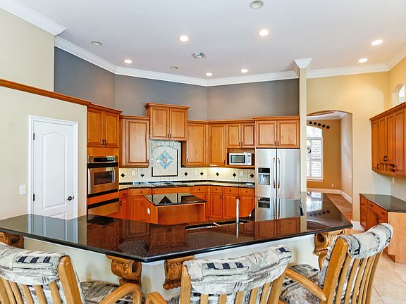 This beautiful home is located in the peaceful and tranquil community of Tildens Grove, a gated/attended community just minutes to shopping, restaurants and tourist attractions. This home features 5 bedrooms and 4 bathrooms along with a bonus room and side entry three-car garage on a 1/2 acre corner lot. As you enter the double glass doors you are greeted by the formal living & dining room with beautiful hardwood floors and a view overlooking the pool area. There are volume ceilings, crown molding and other wood details, as well as 7-inch base molding, & custom light fixtures. This tri-split floor plan is perfect for entertaining and features a large gourmet kitchen with custom backsplash, stainless steel appliances inc. a wall oven/microwave and propane gas cooktop. A large island anchors the room and overlooks the family room which features a pocket sliding door that completely disappears offering a great view of the pool area. The spacious master bedroom has two custom closets and a large bathroom with shower, dual sinks and jetted tub. The secondary bedrooms and office are all over-sized with large closets. There is a large fifth bedroom upstairs with a full bath. The first floor bonus room is ideal for a playroom, storage, movie room or a second office. You will love entertaining in the lanai & pool area with custom outdoor kitchen. This home also has a new spa heater and outdoor kitchen in 2020, new outdoor lighting, solar heating for the pool, and much more.