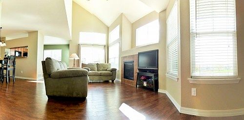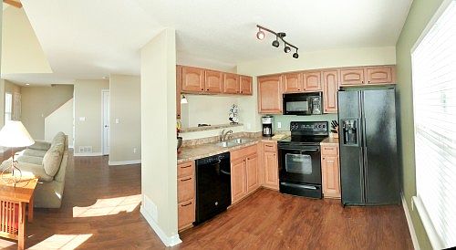 Complete info: http://12808jasminec.CanBYours.com - Natural light pours into this South facing town home. New paint inside & new hand scraped hardwood laminate flooring throughout the main level. You will love the two story great room with gas fireplace, entertainment nook & ceiling fan. Breakfast bar & pass through from kitchen to dining room. Appliances include new dishwasher, smooth top electric range and oven, microwave, fridge with water & ice in the door, clothes washer & dryer. Private patio, pools, park, walking trails & view of park & pond across the street.