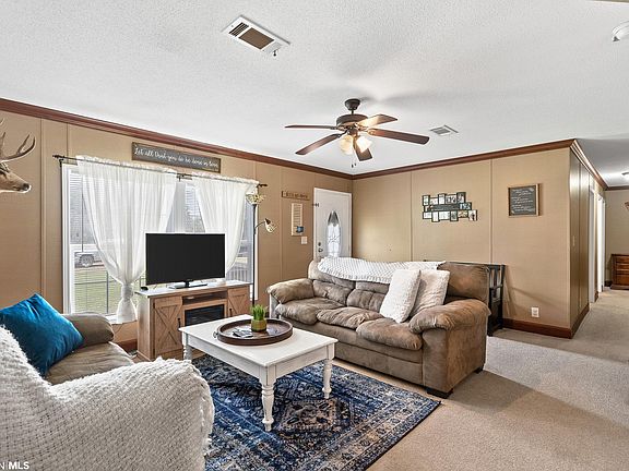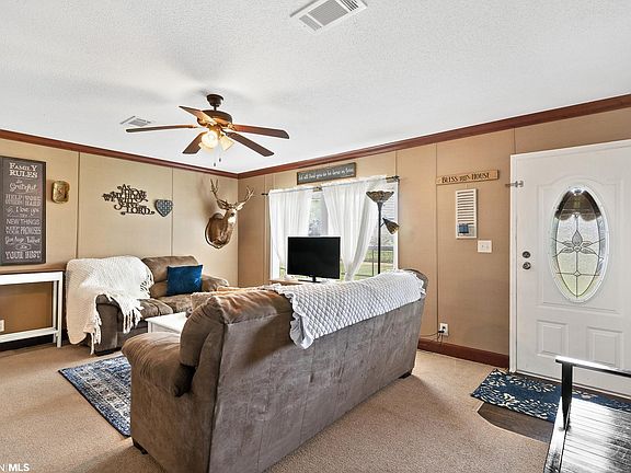 Situated on over 1/2 an acre, this mobile home offers a peaceful private setting! As you walk in, you will notice that the kitchen is really the focal point of the space. It features new vinyl flooring, brand new carpet just installed in the living room and 3 of the bedrooms, a large island perfect for entertaining, custom backsplash, and beautiful barn doors leading into the bonus room. So many possibilities for the bonus room! It could be used as an office, hobby room, or even another bedroom. There is a storage shed that conveys and plenty of room for parking your vehicles, boat, or RV!