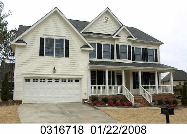 Beautiful Wakefield home on cul-de-sac with full rocking-chair front porch in golf community! Four bedrooms, 3.5 baths, 1st flr. office & screened in outdoor carpeted porch. Huge bonus rm with vaulted celing. Master with spa-like bath and private sitting/exercise room. Spacious kitchen with Granite, island & writing desk. Lots of storage & oversided 2 car garage. Hardwood floors & so much more! Wakefield schools, walk to shops/YMCA, and greenway walking/biking trails!