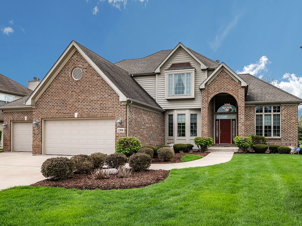 Quality and elegance abound throughout this five bedroom Aspen, custom model home (3,445 square feet) that features a first floor primary suite with luxury bath including double sinks, whirlpool, separate shower and walk-in closet. Neutral throughout, crown molding, wainscoting and an abundance of canned lighting. Hardwood in the foyer, dining room and kitchen. Gorgeous, gourmet kitchen with upgraded cabintry, granite, unique island, planning desk and nice table space. Family room with see through fireplace, ceiling fan and 11 foot ceiling. First floor laundry room. Second floor features four large bedrooms. Huge basement, partially finished with rec room, full bath and storage area. Professionally landscaped yard with large, private patio and sprinkler system. This executive home has been beautifully maintained and has the perfect floor plan for you, along with the three car garage. Highly desirable Plainfield schools too!