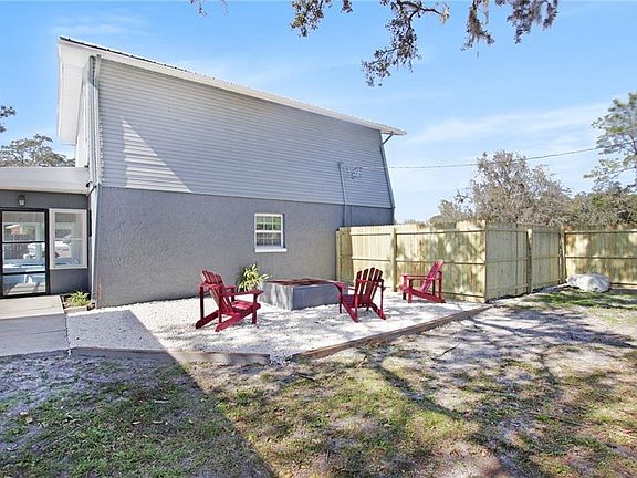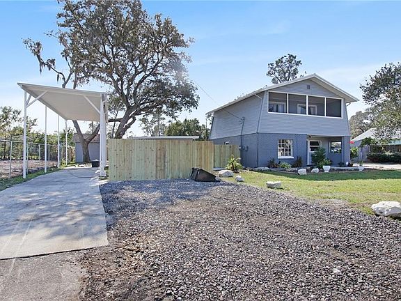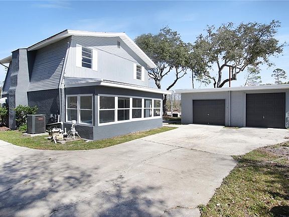 Price Change! Newly combined additional lot next door! This quaint two-bedroom, two-bathroom, two-story home on an oversize lot in Moon Lake Estates is a great place for a small family or empty-nesters with lots of toys and hobbies. A detached two-car garage features an extended workshop and a covered carport is large enough for your RV or boat. Additional parking is also available beside the house. Recent upgrades include the outside freshly painted only three months ago, the water heater installed in March 2018 and a new Goodman A/C unit was installed in April of last year. In addition, other improvements include a new well installed in 2016 and replacement of the metal roof three years ago. A sunny Florida room features a indoor hot tub with a newly installed pump. In addition to the garage, there is another shed, which has ample room for storage. Relax by the outdoor fire pit in the privacy of a newly fenced yard. This home is in a quiet location close to a fishing lake stocked with bass and featuring a boat dock that allows jet skis. If you are looking for additional space, a cleared, 125'x70' double lot for your new construction next door that does not currently have a well or septic. Come see why this home is perfect for storing your toys and relaxing after a long day of fun.