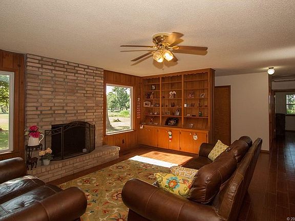 Lovely 2 bedroom, 2 bath, 2 car garage home surrounded by mature trees on 2/3 acres. New double hung windows, plumbing, roof and ceramic tile floors. Dry in-ground storm cellar for Oklahoma weather. Abundance of storage.