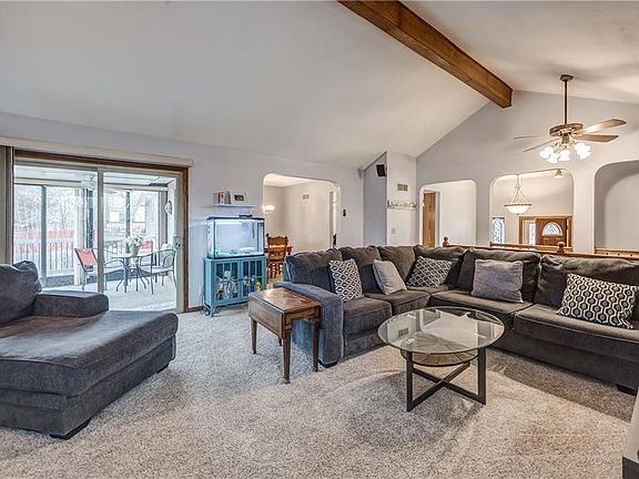 A traditional raised ranch-style home that combines classic design with updated amenities, featuring 4 bedrooms (4th bedroom is a non-conforming), 2 bathrooms, and an all-season sunroom. The upper level offers a spacious and sunlit living area with a seamless flow between the living room, dining room, and kitchen. The bedrooms are generously sized. The Primary bedroom has a deck overlooking the pool. The highlight of this home is the all-season sunroom, a versatile space perfect for enjoying natural light and scenic views year-round, whether relaxing or entertaining. The finished lower level adds extra functionality, ideal for a great room, home office, or recreational space. Media Room with Projector and Screen that stay with the house! Outside, the property features a stunning inground pool, surrounded by a beautifully landscaped yard, creating a private oasis for outdoor gatherings and summer fun. This raised ranch offers a timeless layout with exceptional spaces for leisure and enjoyment, making it an ideal retreat for any season.