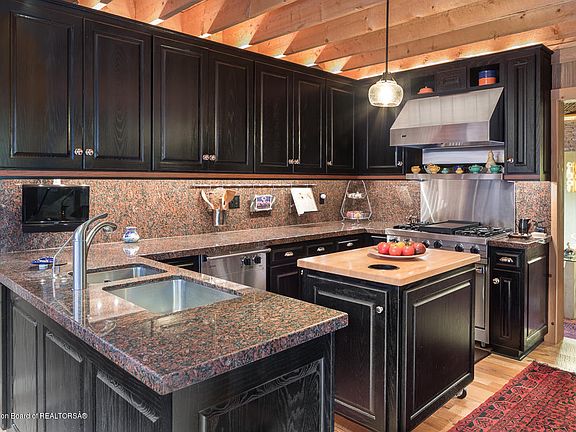 Hidden in an aspen forest an hour outside Jackson Hole sits Moose Hill, a unique property for those who want a custom home in a pristine and natural setting. There are 10.5 acres which are almost entirely surrounded by protected lands and it borders Forest Service lands. The 3,435 SF home sits on a hillside with complete privacy. Hike, horse back ride, walk, snow shoe, snow machine, ski or simply sit on the back deck and enjoy the quiet of nature. The home has four bedrooms and four baths, and the master suite is separated and private. The spaces are intimate with tall windows filled by natural sunlight by day while the 3 Danish wood stoves provide wonderful coziness and warmth in the evenings. Most furnishings are included in the sale making a move-in ready home. Winter access over snow.