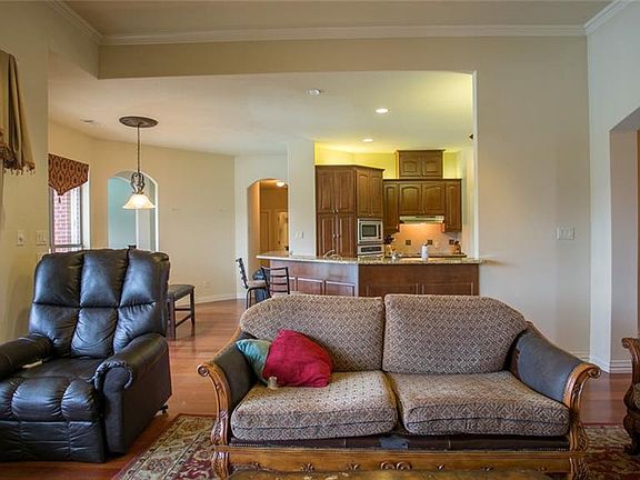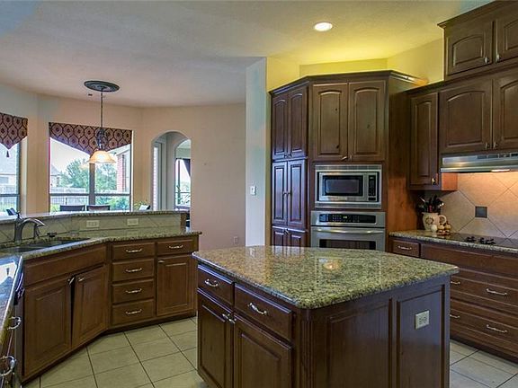 Custom built home in gated community of Santa Fe Trail. Entry features wood floors leading to living area with panoramic picture window of the in ground pool and backyard with privacy fence. Stainless appliances and granite counters await the family cook in the kitchen. Split bedrooms with master offering sitting area, separate vanities and access to the pool and backyard area. Property has separate game and media rooms down. The large room upstairs could be a 4th bedroom or quiet home office. Swimming pool is surrounded by iron fence. The outer wood privacy fence is only one in the neighborhood as grandfathered by the HOA. Mansfield ISD! Property extends behind wood fence.