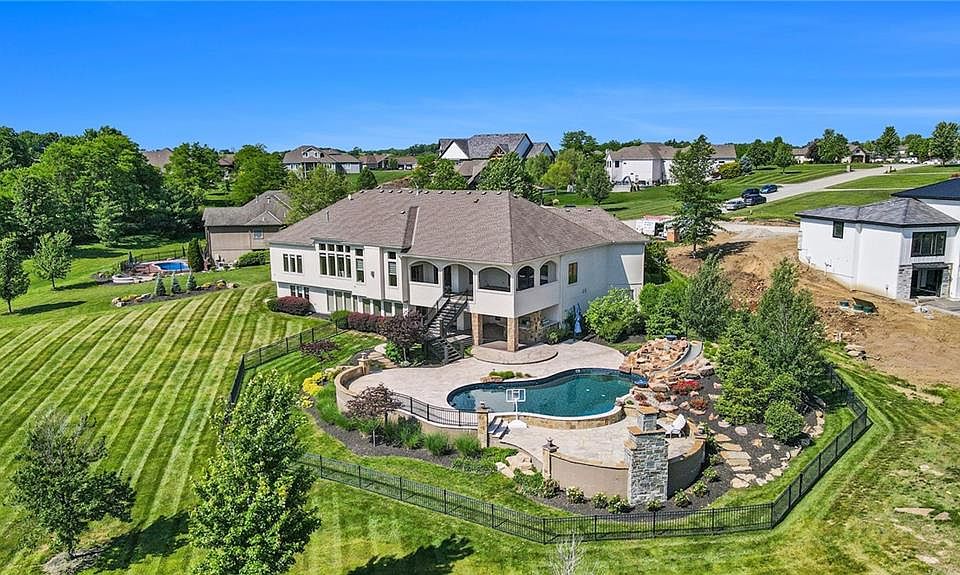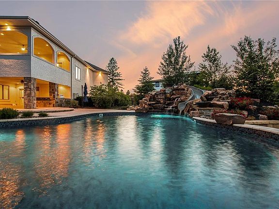 This exquisite reverse 1.5-story home is situated on a sprawling acre of land and is lavishly furnished! Prepare to be dazzled by the kitchen, which boasts custom cabinetry, top-of-the-line appliances, a convenient grocery pass-through in the pantry, and opens up to a warm and inviting hearth room and living room, separated by a stunning stone wall arc. The abundance of natural light that pours in through the expansive windows is simply breathtaking. The gleaming wood floors throughout add a touch of elegance to this already impressive home. Step outside onto the generously sized covered lanai and bask in the beauty of the surrounding landscape. Master suite is a luxurious haven with a cozy fireplace, separate shower and tub, double sinks, and a closet with built-ins for best organization. The home's lower level features a suspended garage, ideal for storage, as well as a large recreation area. On the same level, there are three more spacious bedrooms, each with its own private bathroom and walk-in closet. The backyard is a true resort-style retreat, ideal for hosting gatherings and entertaining guests. It features an outdoor kitchen, a sparkling swimming pool complete with a rock water slide feature, and a cozy firepit for those chilly evenings. The suspended garage's accessibility from the backyard is a highly convenient feature, allowing for effortless storage of pool equipment and other outdoor gear. This home is a true masterpiece, seamlessly blending luxury and functionality!