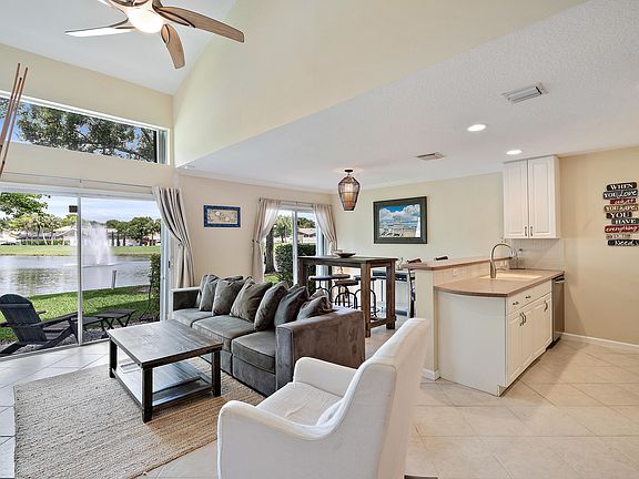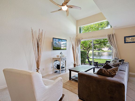 Come see this beautiful townhome that sits on the lake and offers gorgeous water views! Two bedrooms upstairs and a bedroom and full bath downstairs. Perfect for guests or even a roommate! Newer Frigidaire stainless steel kitchen appliances, washer & dryer & hot water heater. Living areas fully tiled, master and downstairs bedrooms have laminate. Accordian shutters on upstairs windows and downstairs sliders. Lots of closet space and storage. Fabulous central location. Close to restaurants, shopping, I-95 and the FL turnpike. Come see for yourself!