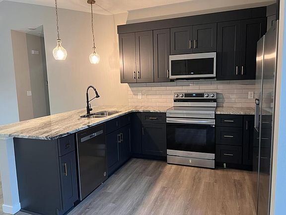 New Townhome Available June 6th. $1850 One story Open kitchen, dining and living room. Enhanced by vaulted ceilings. The kitchen is adorned with charcoal colored painted cabinets, granite counertops, and recessed lighting. Laminate flooring throughout the main living area and bathrooms Step out the sliding glass door onto the rear patio. All appliances are included. All electric Lawn service and snow removal included 1 car garage No smoking No Pets 1 year lease