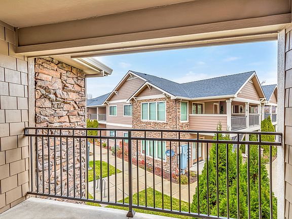 counters, tile backsplash, eating bar and appliances. The dining area is open to the kitchen and offers a balcony patio. Wonderful primary bedroom with vaulted ceilings and walk-in closets, and attached primary bathroom offers dual sinks with tile countertop, tile floors and large tile shower. Enjoy living in the Stonegate Estates with just a short distance from restaurants, great shopping center, medical offices and Rogue Regional Hospital. HOA fee is approx. $290 per month and includes water, sewer, garbage, landscaping and exterior maintenance. Move-in ready.