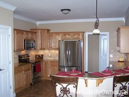 Located in beautiful NW Arkansas (Fayetteville area), this home has:Split and open floor plan; ceramic tile in wet areas, formal dining room and foyer; 9 foot ceilings with gorgeous crown molding in foyer, dining room, kitchen and master bedroom; vaulted ceiling in living room with gas fireplace.  Kitchen has granite counters, stainless steel appliances, pantry and under cabinet lighting. Master suite has tray ceiling, large bathroom with jacuzzi tub, separate shower, private water closet, double sinks and a large walk-in closet with built-ins. Professionally landscaped and maintained (front and back); privacy fence; natural gas grill connection. 10'x38' partially covered patio is ideal for entertaining.  Seamless gutters.Finished oversized 2 car garage with epoxy sealed floor. Beautiful stocked pond just steps from your front door. Quiet neighborhood with nice views of mountains and pond. Extremely energy efficient.8 miles from I-540 Will happily email additional pictures or information.Additional property info: http://www.forsalebyowner.com/listing/C9JNL?provider_id=28079