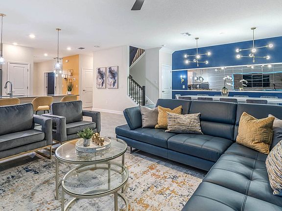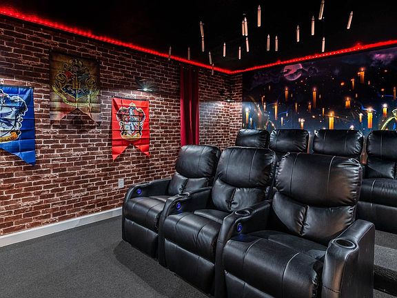 Welcome to this stunning 8-bedroom, 5-bathroom private vacation pool home located in the prestigious ChampionsGate Resort. This spacious home can accommodate up to 20 guests and features a private east-facing pool with a spa, a game room with a pool table, skeeball, and arcade games, as well as a theater room. Themed bedrooms, including Frozen and Minions, add a touch of fun for the kids. Situated just 10 miles from Disney World, this home is perfect for families looking to explore Central Florida's attractions. The home boasts a fully equipped kitchen with seating for 10 at the dining table and 4 additional spots at the breakfast counter, making it ideal for family meals and gatherings. The game room and theater room provide endless entertainment options for guests of all ages. For an additional charge of $30 per day plus tax, guests can heat the pool and spa. The resort allows a maximum of 5 cars or 3 large passenger vans, with additional visitor parking available. Additional rental items such as BBQs, cribs, pack-n-plays, strollers, and high chairs are available for rent. Located within the gated community of ChampionsGate Resort, guests have access to two clubhouses, including the Retreat Clubhouse, which is just a 2-minute drive or 6-minute walk away. Enjoy resort-style amenities such as a huge pool with cabanas, a water slide, a lazy river, a children's splash park, a fitness center, a movie theater, a full-service restaurant, an 18-hole golf course, a tiki bar, a playground, and volleyball courts. The resort is conveniently located 10 miles from Walt Disney World, 21 miles from Universal Studios, and 18 miles from SeaWorld. Shopping and dining options are also nearby, with Publix Supermarket just 2 miles away. This property is smoke-free and pet-free for your comfort. Towels and linens are provided, and complimentary Wi-Fi is available. Guests can enjoy free on-site parking with no resort fees. Check-in is seamless with online email check-in, and 24/7 on-call maintenance is available. Please note that the pool is serviced weekly, and guests are responsible for replenishing any supplies beyond the starter welcome packet provided. A penalty may apply for any violations of the resort's parking rules.