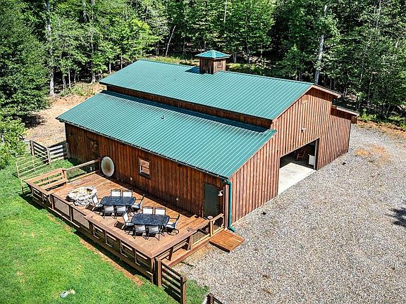Lake Nottely Mountain & Lakefront Estate — 36+ Private Acres in the Blue Ridge Mountains. Discover a rare combination of lakefront living and mountain retreat on this exceptional 36+ acre estate in the heart of the Blue Ridge Mountains. Bordering hundreds of acres of US Forest Service land, this private North Georgia property offers unparalleled beauty, recreation, and seclusion. The charming cottage-style home, currently undergoing renovations, features 3 bedrooms plus a bonus room — all positioned to capture sweeping lake and pasture views. A newly built barn with living quarters offers a spacious great room, full kitchen, bathroom, laundry, and two bonus rooms, plus a deck with a built-in fire-pit overlooking the property — perfect for guests, events, or multi-generational living. Additional amenities include a four-stall lakeside garage with a full kitchen, ideal for entertaining, and a private dock providing direct access to Lake Nottely for boating, fishing, and water-sports. For equestrian enthusiasts, the estate features two fenced pastures and open riding space. Outdoor sportsmen will appreciate the private gun range, skeet shooting station, and multiple hunting blinds. Several outbuildings and storage sheds add convenience and versatility. Whether you envision an equestrian property, luxury family compound, or North Georgia vacation retreat, this one-of-a-kind estate delivers unmatched privacy, recreational opportunities, and breathtaking natural scenery — all just minutes from Blairsville, Blue Ridge, and the Appalachian Trail.
