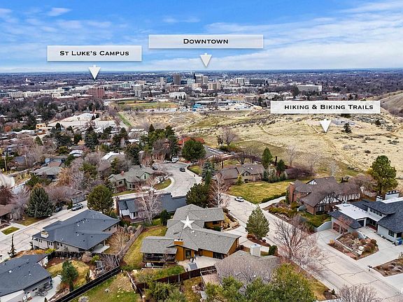 Situated above the city, with sweeping views of the Boise skyline, this expansive 5 bed, 3.5 bath custom home has it all. Convenient urban location, minutes to downtown, St. Luke's Medical Campus, and miles of hiking and biking trails, this is an extremely desirable location to live. Ample living spaces inside and out allow everyone their own quiet refuge. Open concept kitchen includes granite countertops, lots of cabinetry as well as stainless-steel appliances. Main level primary suite features a large walk in closet and balcony with a view. Expansive lower level has a walk-out basement, large covered entertainment patio, and tons of storage space. Many recent upgrades including new windows in 2021, new AC unit in 2022, exterior paint in 2022, electric car charging station, and an invisible fence. This home is an entertainers dream with lots of room for family and friends alike.