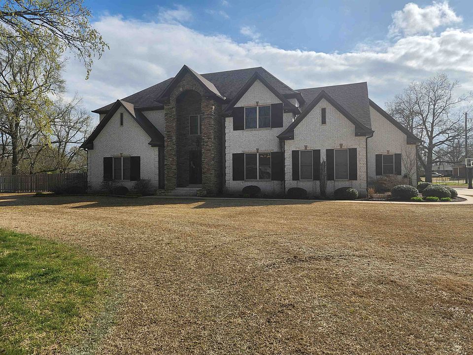 Beautiful Custom built home. Brick and vinyl siding exterior on an acre lot. Side load 3 car garage. Fenced yard. HDWD flooring down. Primary BR and 2nd BR down. 3 Full baths. Granite counters. Smooth ceilings(9'). Oak runners on stairway. Kitchen has large breakfast bar opening into the family room. Large playroom with cabinets, counters, sink upstairs. Off BR's up w/ jack n' jill bath. Laundry/mud rm. Exterior balcony overlooking backyard. Walk-in attic. sprinkler sys. Actual SF is 3422.