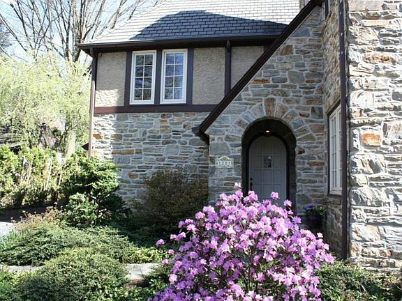 Absolutely stunning School Lane Hills English Tudor house built 1929. Real stucco and stone exterior. Two car detached garage and potting shed. Second floor with three bedrooms and two baths both redone, cedar closet in hallway. First floor kitchen with center island and room for kitchen dining. Viking gas range and stove, appliances new in 2009-except for stove. Living room with French doors opening to screened in porch.